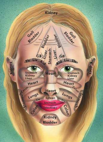 The first place an illness may manifest is the ever-so-sensitive skin of the face. A blemish on the face, may indicate a corresponding weakness in the matching part of the body. The Chinese facial map links each area of your face to a different area on your body. The list goes like this.