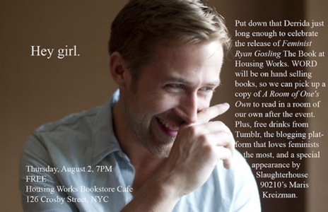 In case you’re totally obsessed with Feminist Ryan Gosling (like any lady in her right mind), the blog published a book. And, they’re having the release party at your favorite thrift shop, Housing Works. It’s this Thursday, August 2nd at 7pm in the 126 Crosby St. location in NYC. Ryan Gosling probably won’t make it, but there will be free drinks and books for sale full of his pictures.